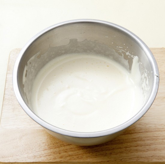 거품이 주저앉지 않도록 빠르게 섞는다.