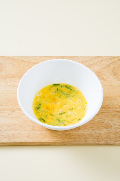 2. 달걀은 맛술을 넣어 곱게 푼 다음 대파를 넣어 섞는다.