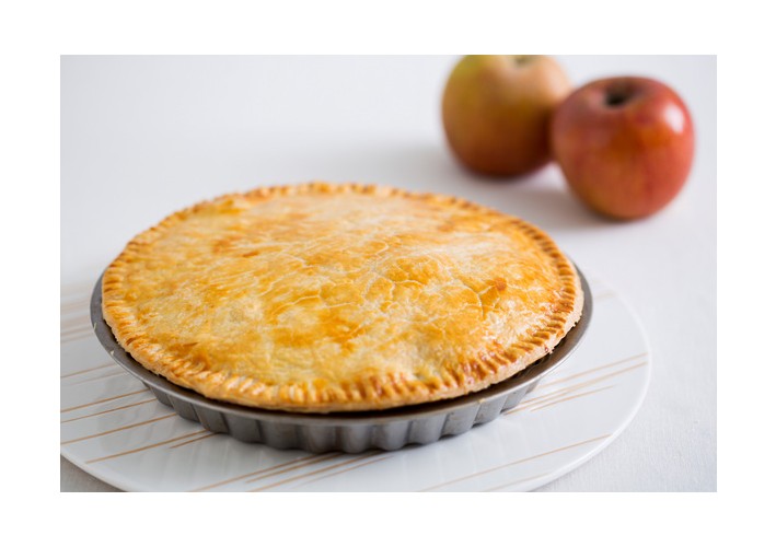 9. 사과조림을 파이틀에 채우고 파이지 가장자리에 물칠을 한 후 뚜껑을 덮는다.