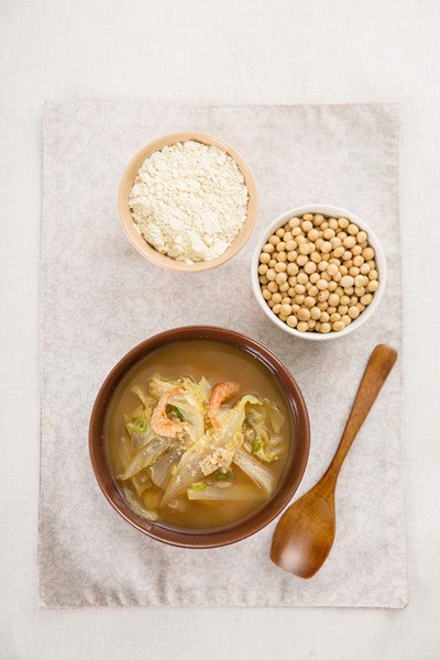 콩가루 배춧국을 끓여