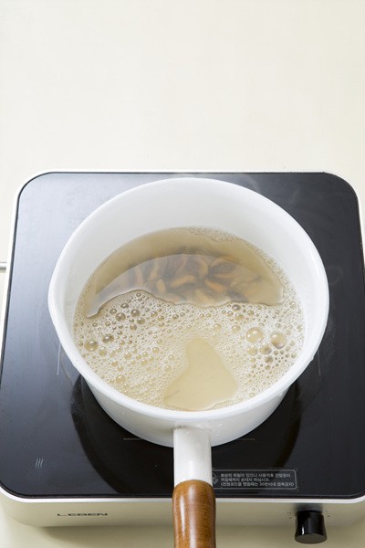 3. 냄비에 홍합과 물 4컵을 넣어 끓이다가 홍합이 익으면 건져 내어 국물을 만들고 홍합은 살만 떼어 준비한다.