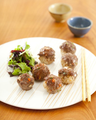 3. 밥은 따끈하게 준비해서 동그랗게 일정한 크기로 뭉친다. 밥 위에 양념한 쇠고기를 올려 미니 머핀틀에 기름을 칠하고 하나씩 채워 200℃로 예열한 오븐에서 10분 정도 굽는다.
