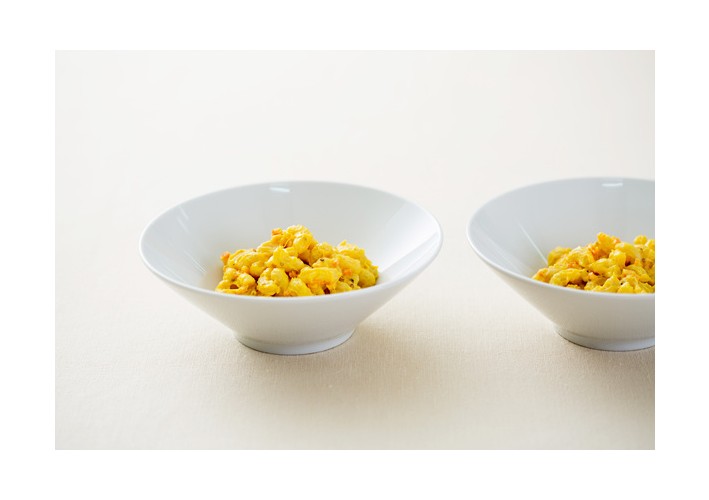 2. 마카로니에 당근, 단호박, 마요네즈를 넣어 섞는다.